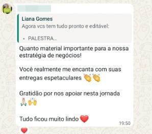 Acompanhamento diário em uma comunidade exclusiva no WhatsApp, onde você terá apoio constante, poderá trocar experiências e ampliar sua rede de contatos com profissionais altamente especializadas da área.